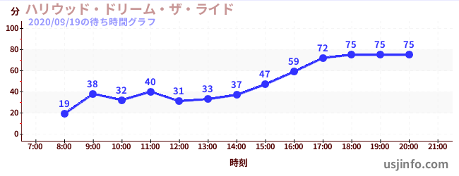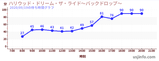 • ハリウッド・ドリーム・ザ・ライド〜バックドロップ〜$B$N(B2020年09月19日の待ち時間