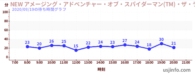 • NEW アメージング・アドベンチャー・オブ・スパイダーマン(TM)・ザ・ライド 4K3D$B$N(B2020年09月19日の待ち時間
