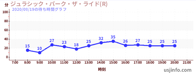 • ジュラシック・パーク・ザ・ライド(R)$B$N(B2020年09月19日の待ち時間