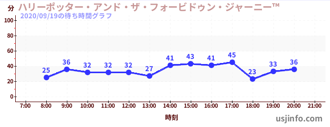 • ハリーポッター・アンド・ザ・フォービドゥン・ジャーニー™$B$N(B2020年09月19日の待ち時間