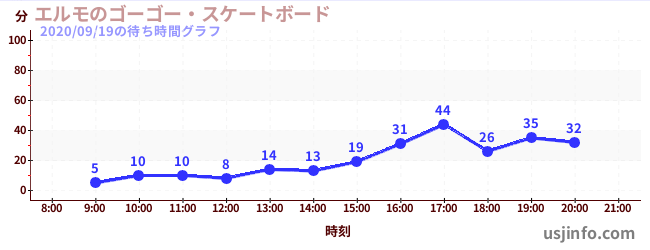 • エルモのゴーゴー・スケートボード$B$N(B2020年09月19日の待ち時間