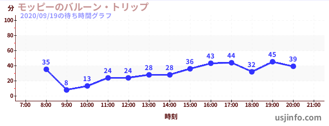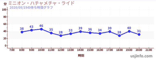• ミニオン・ハチャメチャ・ライド$B$N(B2020年09月19日の待ち時間