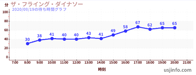 • ザ・フライング・ダイナソー$B$N(B2020年09月19日の待ち時間