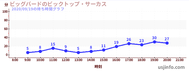 • ビッグバードのビックトップ・サーカス$B$N(B2020年09月19日の待ち時間