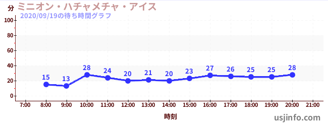 • ミニオン・ハチャメチャ・アイス$B$N(B2020年09月19日の待ち時間