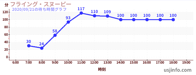 • フライング・スヌーピー$B$N(B2020年09月21日の待ち時間
