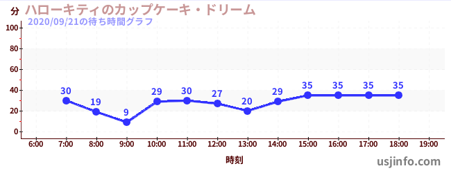 • ハローキティのカップケーキ・ドリーム$B$N(B2020年09月21日の待ち時間