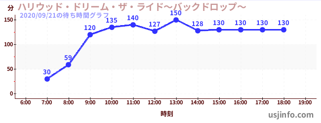 • ハリウッド・ドリーム・ザ・ライド〜バックドロップ〜$B$N(B2020年09月21日の待ち時間
