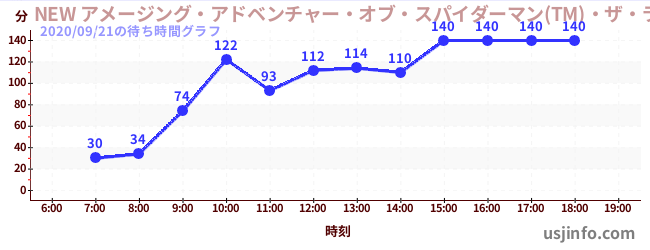 • NEW アメージング・アドベンチャー・オブ・スパイダーマン(TM)・ザ・ライド 4K3D$B$N(B2020年09月21日の待ち時間