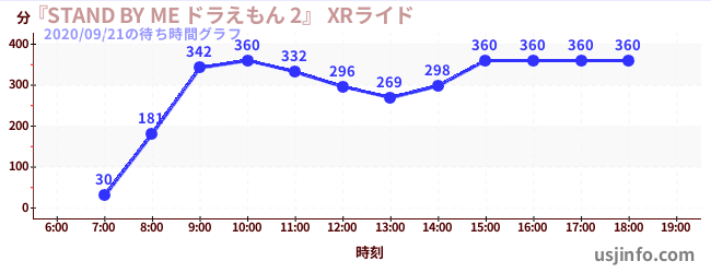 • 『STAND BY ME ドラえもん 2』 XRライド$B$N(B2020年09月21日の待ち時間