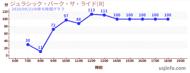 • ジュラシック・パーク・ザ・ライド(R)$B$N(B2020年09月21日の待ち時間