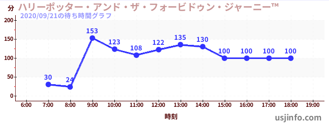 • ハリーポッター・アンド・ザ・フォービドゥン・ジャーニー™$B$N(B2020年09月21日の待ち時間