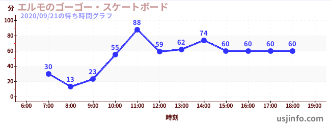• エルモのゴーゴー・スケートボード$B$N(B2020年09月21日の待ち時間