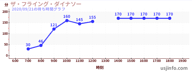• ザ・フライング・ダイナソー$B$N(B2020年09月21日の待ち時間