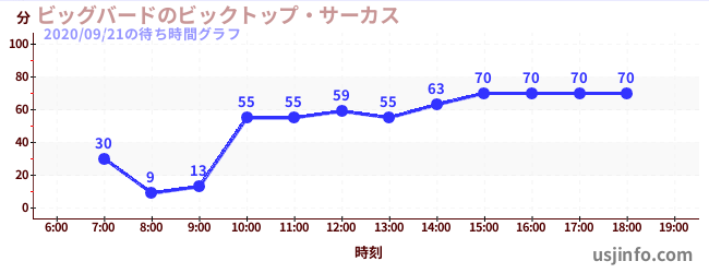 • ビッグバードのビックトップ・サーカス$B$N(B2020年09月21日の待ち時間