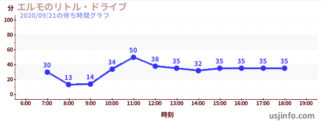 • エルモのリトル・ドライブ$B$N(B2020年09月21日の待ち時間