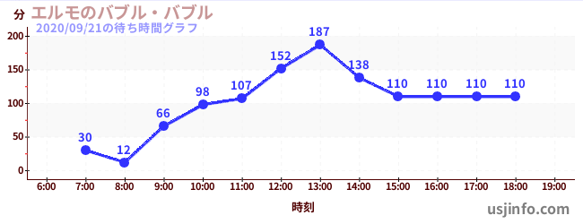 • エルモのバブル・バブル$B$N(B2020年09月21日の待ち時間