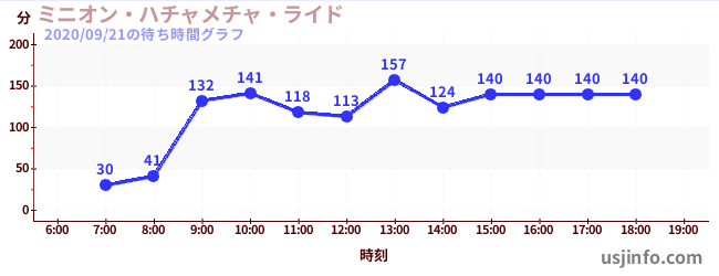 • ミニオン・ハチャメチャ・ライド$B$N(B2020年09月21日の待ち時間
