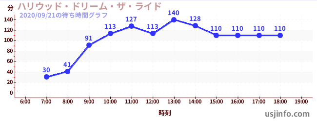 • ハリウッド・ドリーム・ザ・ライド$B$N(B2020年09月21日の待ち時間