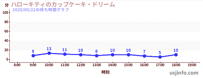 • ハローキティのカップケーキ・ドリーム$B$N(B2020年09月22日の待ち時間