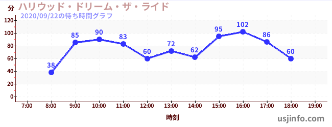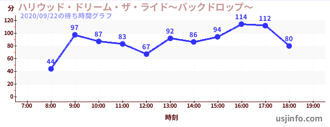 • ハリウッド・ドリーム・ザ・ライド〜バックドロップ〜$B$N(B2020年09月22日の待ち時間