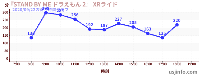 • 『STAND BY ME ドラえもん 2』 XRライド$B$N(B2020年09月22日の待ち時間