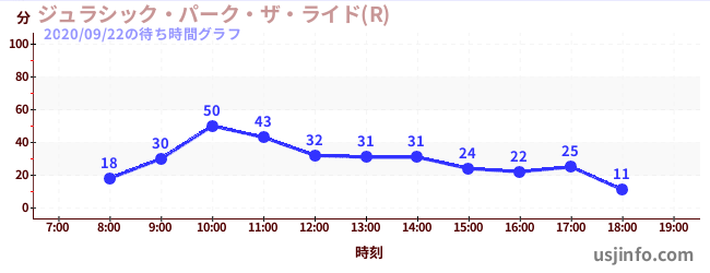 • ジュラシック・パーク・ザ・ライド(R)$B$N(B2020年09月22日の待ち時間