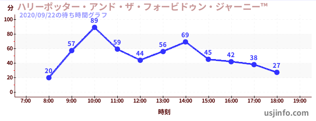 • ハリーポッター・アンド・ザ・フォービドゥン・ジャーニー™$B$N(B2020年09月22日の待ち時間
