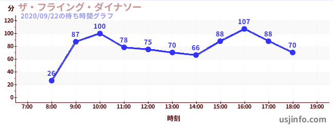 • ザ・フライング・ダイナソー$B$N(B2020年09月22日の待ち時間