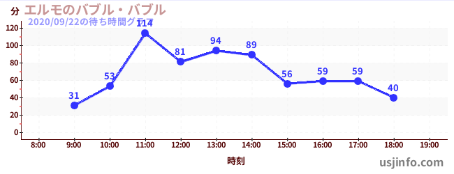 • エルモのバブル・バブル$B$N(B2020年09月22日の待ち時間