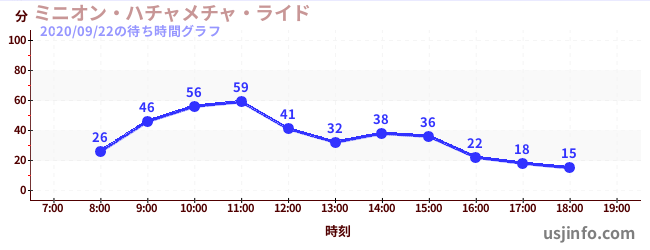 • ミニオン・ハチャメチャ・ライド$B$N(B2020年09月22日の待ち時間