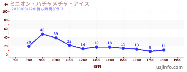 • ミニオン・ハチャメチャ・アイス$B$N(B2020年09月22日の待ち時間