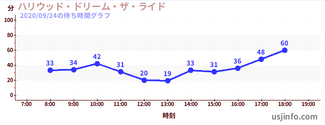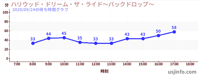 • ハリウッド・ドリーム・ザ・ライド〜バックドロップ〜$B$N(B2020年09月24日の待ち時間