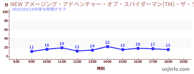 • NEW アメージング・アドベンチャー・オブ・スパイダーマン(TM)・ザ・ライド 4K3D$B$N(B2020年09月24日の待ち時間