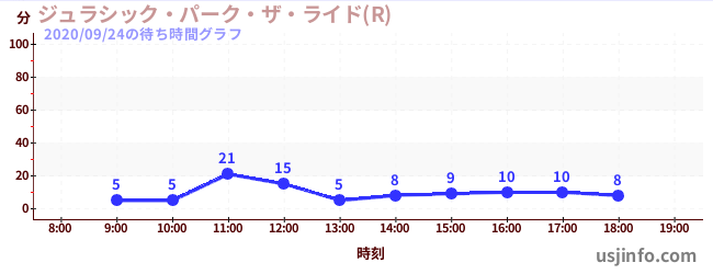 • ジュラシック・パーク・ザ・ライド(R)$B$N(B2020年09月24日の待ち時間