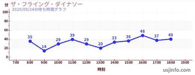 • ザ・フライング・ダイナソー$B$N(B2020年09月24日の待ち時間