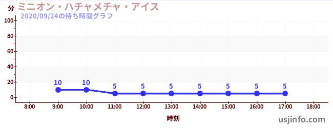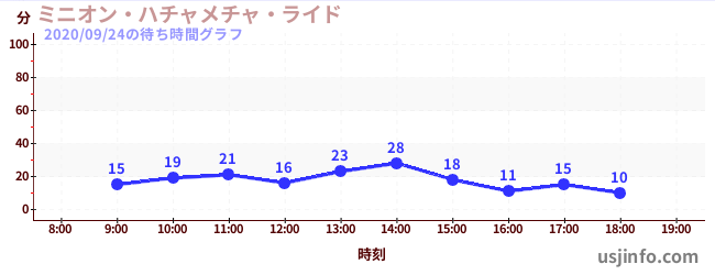 • ミニオン・ハチャメチャ・ライド$B$N(B2020年09月24日の待ち時間
