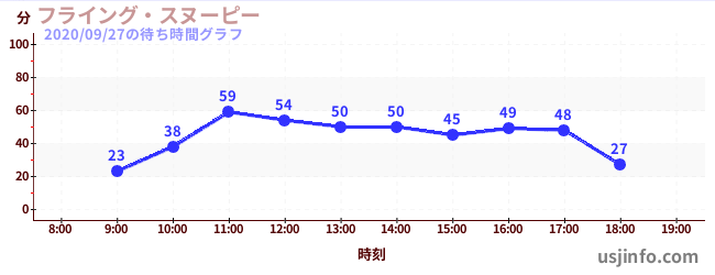 • フライング・スヌーピー$B$N(B2020年09月27日の待ち時間