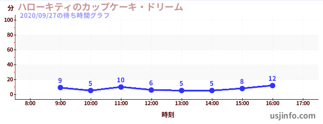 • ハローキティのカップケーキ・ドリーム$B$N(B2020年09月27日の待ち時間