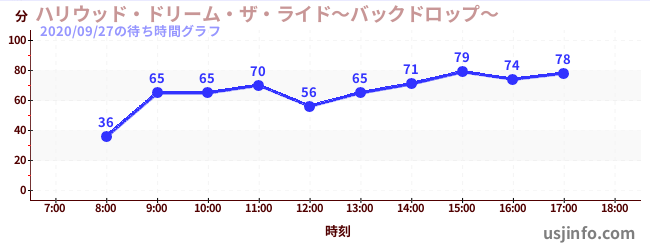 • ハリウッド・ドリーム・ザ・ライド〜バックドロップ〜$B$N(B2020年09月27日の待ち時間