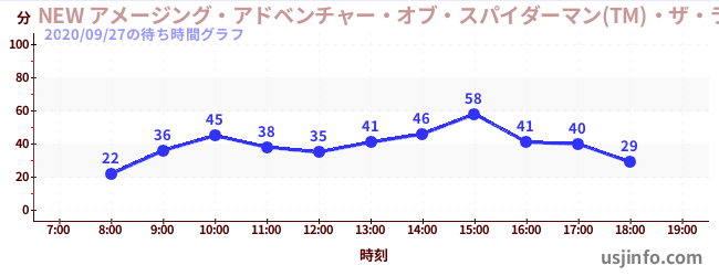 • NEW アメージング・アドベンチャー・オブ・スパイダーマン(TM)・ザ・ライド 4K3D$B$N(B2020年09月27日の待ち時間
