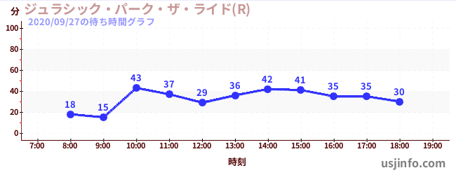 • ジュラシック・パーク・ザ・ライド(R)$B$N(B2020年09月27日の待ち時間