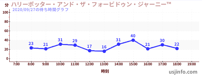 • ハリーポッター・アンド・ザ・フォービドゥン・ジャーニー™$B$N(B2020年09月27日の待ち時間