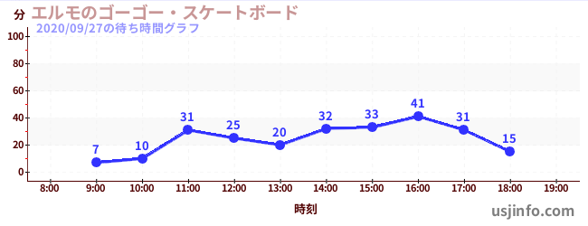 • エルモのゴーゴー・スケートボード$B$N(B2020年09月27日の待ち時間