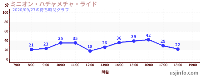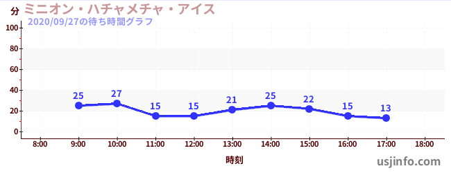 • ミニオン・ハチャメチャ・ライド$B$N(B2020年09月27日の待ち時間