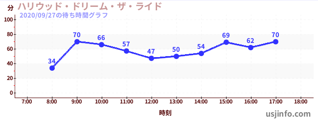 • ハリウッド・ドリーム・ザ・ライド$B$N(B2020年09月27日の待ち時間