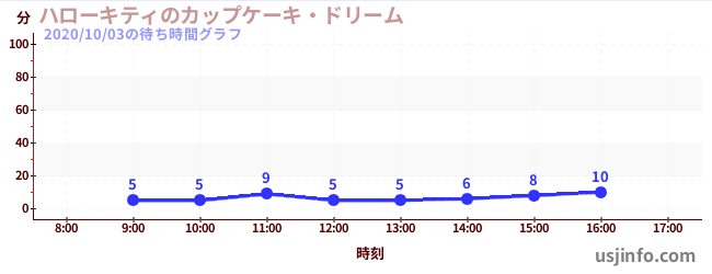 • ハローキティのカップケーキ・ドリーム$B$N(B2020年10月03日の待ち時間