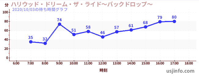 • ハリウッド・ドリーム・ザ・ライド〜バックドロップ〜$B$N(B2020年10月03日の待ち時間