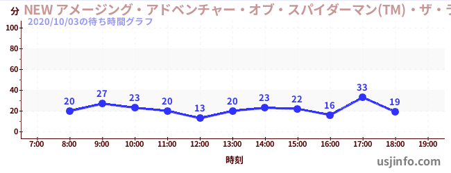 • NEW アメージング・アドベンチャー・オブ・スパイダーマン(TM)・ザ・ライド 4K3D$B$N(B2020年10月03日の待ち時間