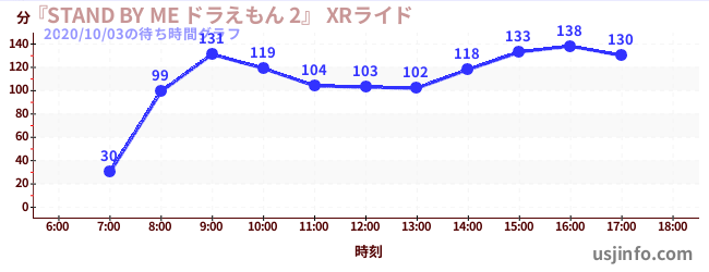 • 『STAND BY ME ドラえもん 2』 XRライド$B$N(B2020年10月03日の待ち時間